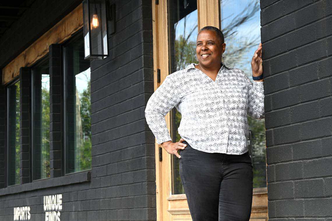 Dianna Ward with the Rozzelles Ferry Road building, her second redevelopment in the historic West End of Charlotte. Photo by Jeff Siner jsiner@charlotteobserver.com