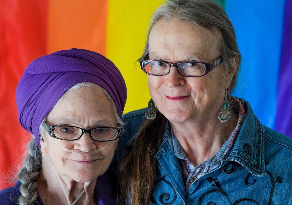 Meta Ellis, left, and her wife, Emma McDaniel Ellis, right, in 2022