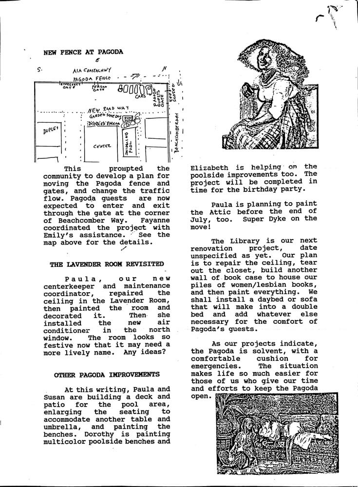 This newsletter story about a new fence between the Pagoda and State Road A1A shows how they planned to deal with the heavy traffic coming off the new bridge right at their entrance.