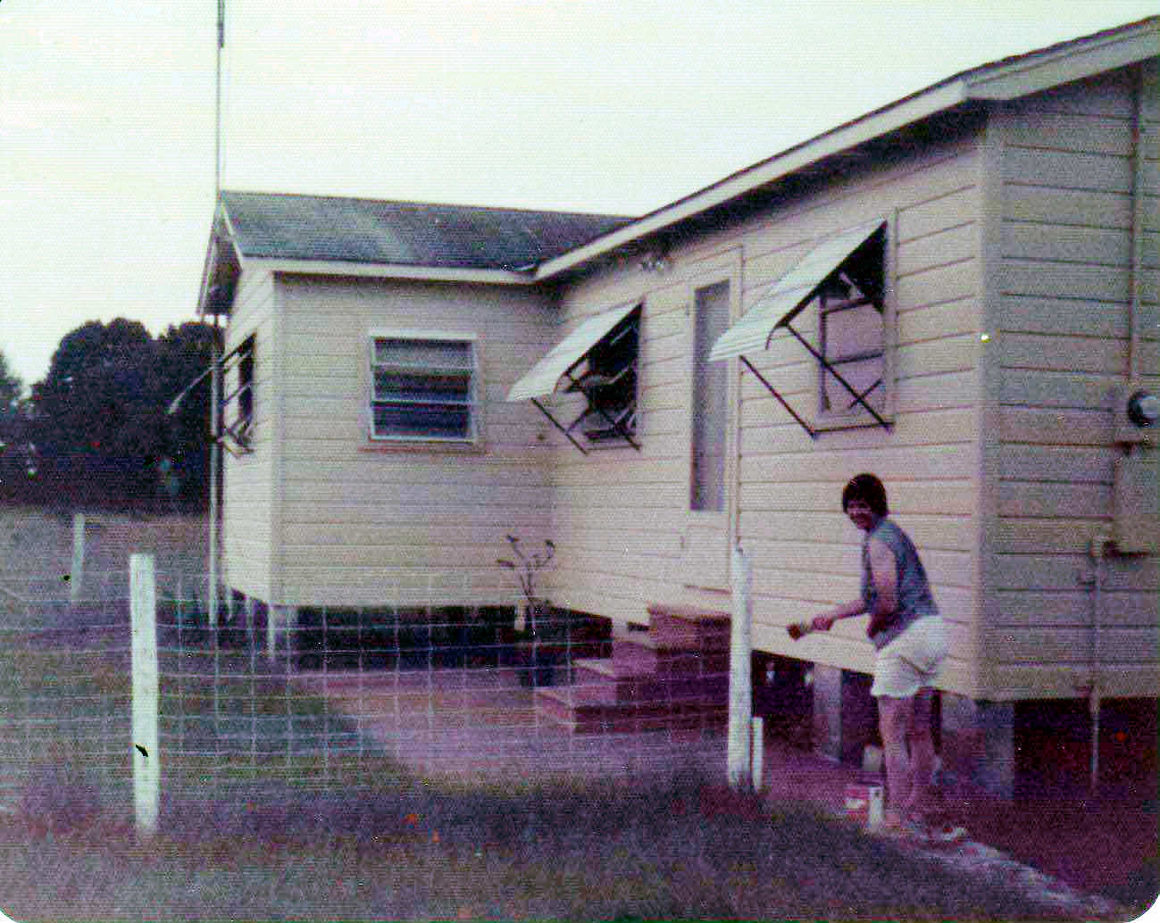 Shewolf painting the exterior of the Jim Walter house her dad moved to the land.